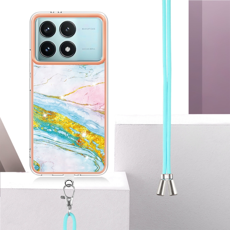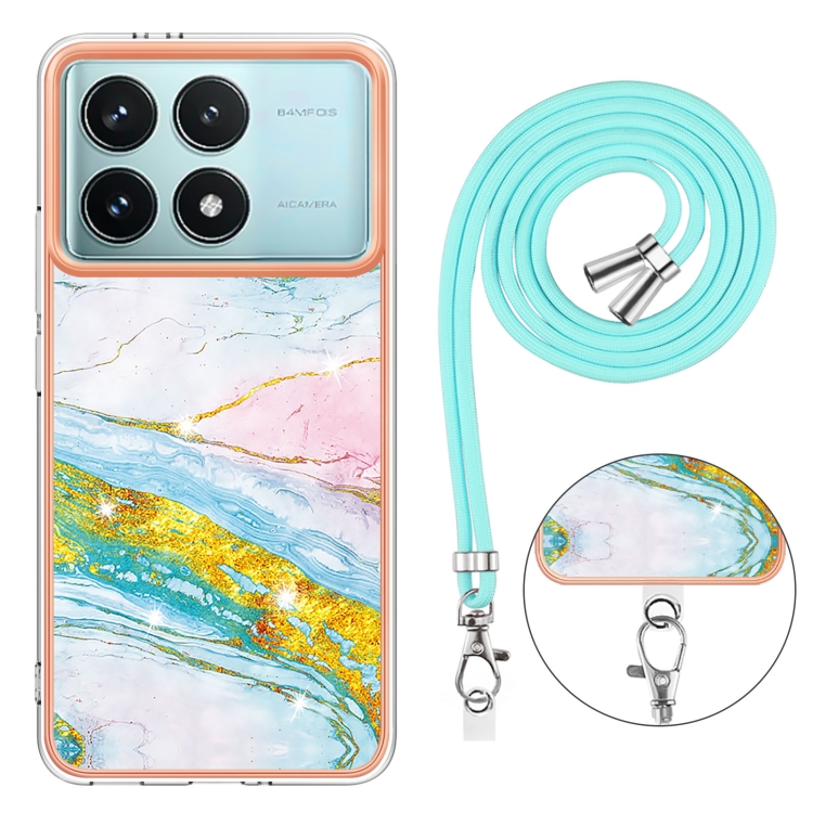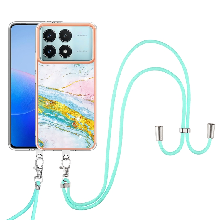 Funda para Teléfono con Imd de Doble Cara con Galvanoplastia de Mármol para Xiaomi Poco F6 Pro 5G con Cordón (Verde 004)