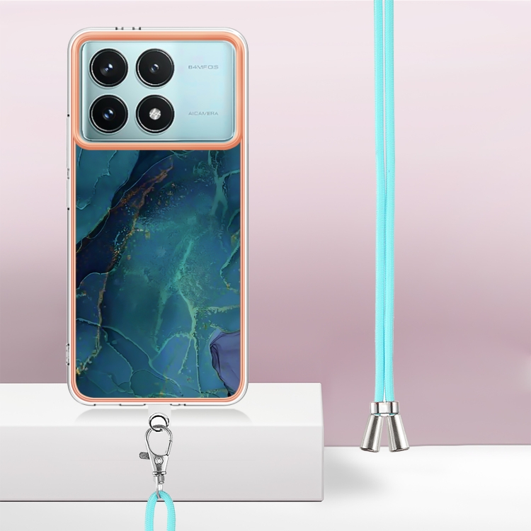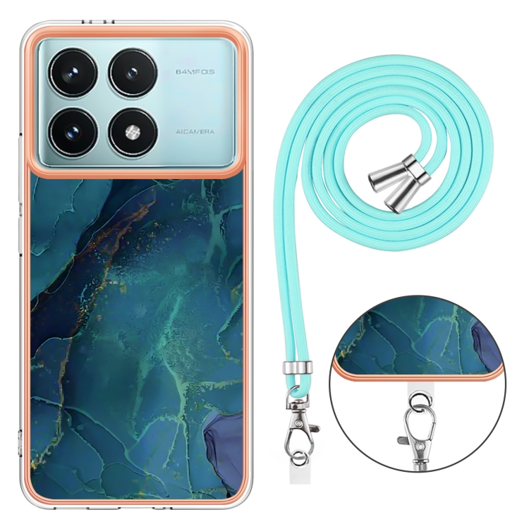 Funda para Teléfono con Imd de Doble Cara con Galvanoplastia de Mármol para Xiaomi Poco F6 Pro 5G con Cordón (Verde 017)