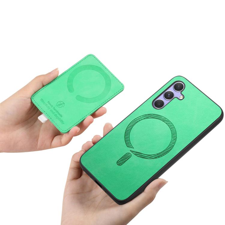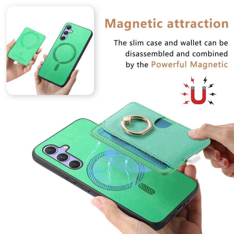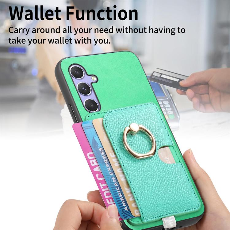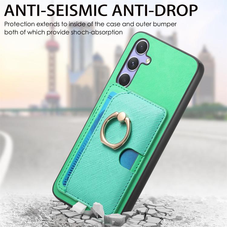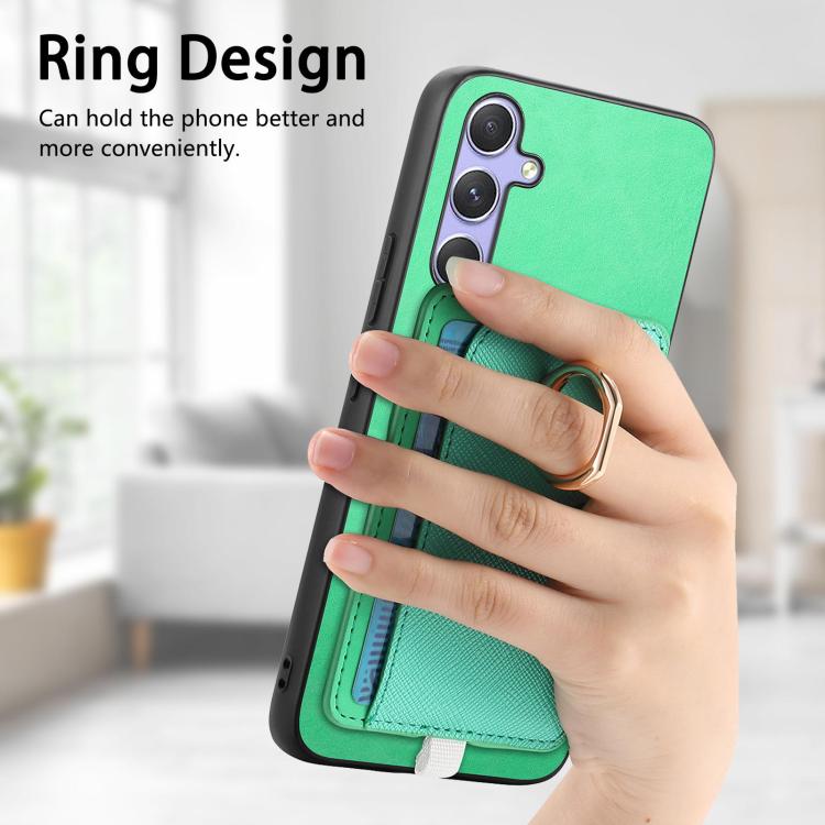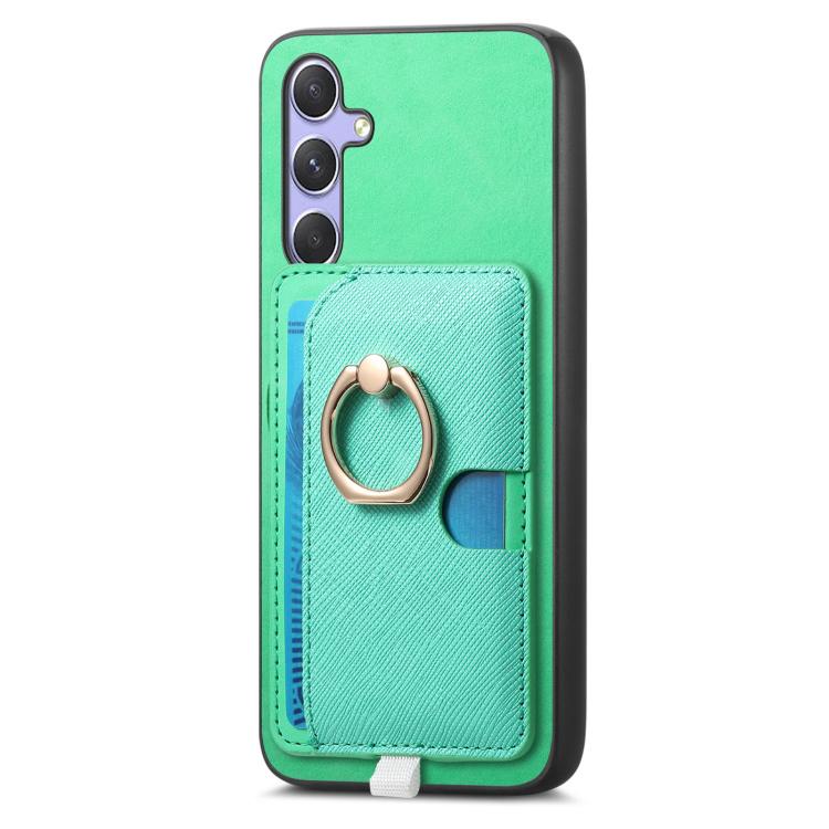 Funda para Teléfono Samsung Galaxy A25 Ranuras Tarjetas Anillo Cuero Diseño Retro (Verde)