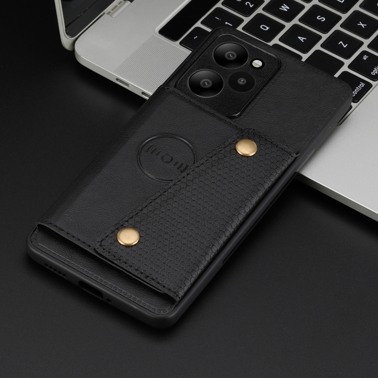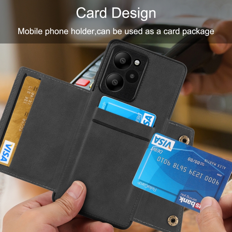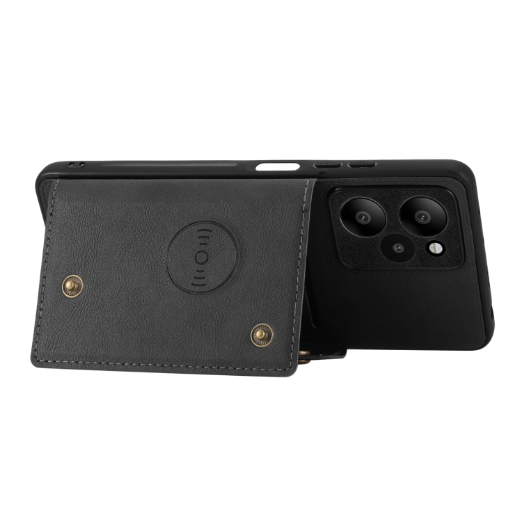 Funda para Teléfono con Ranuras para Tarjetas y Doble Hebilla para Xiaomi Redmi 13 4G Global (Negra)
