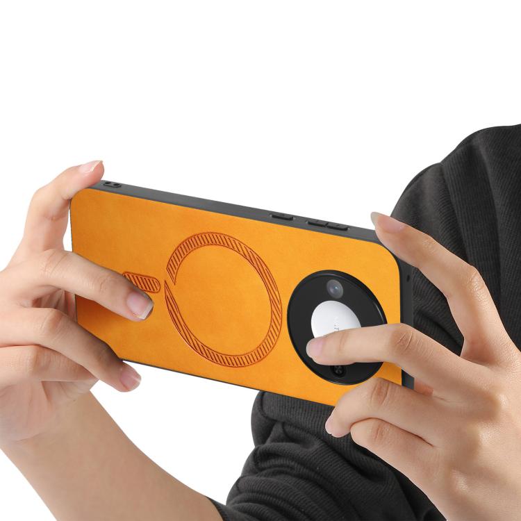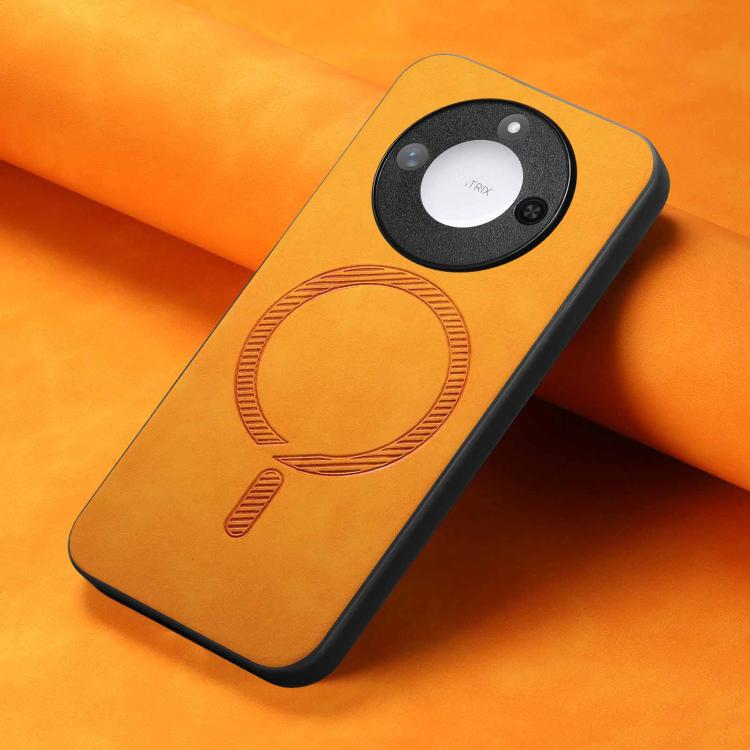 Funda Trasera Magnética de PU para Honor Magic7 Pro Retro Magsafe (Amarilla)