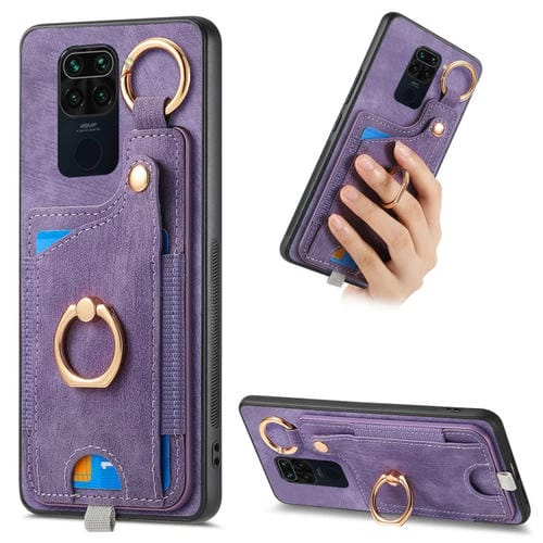 Funda para Teléfono con TaRJetero y Anillo con Tacto de Piel Estilo Retro para Redmi Note 9 4G con Lazo para Colgar (Morado)