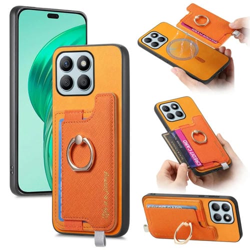 Funda para Teléfono Honor X8B con Tarjetero y Anillo de Cuero Magsafe Cross (Amarillo)