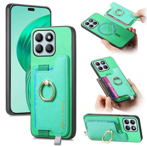 Funda para Teléfono Honor X8B con Tarjetero y Anillo de Cuero Retro Magsafe (Verde)