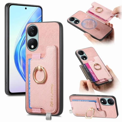 Funda para Teléfono Honor X7B Play 8T 5G con Tarjetero Anillo Cuero Diseño Retro (Rosa)