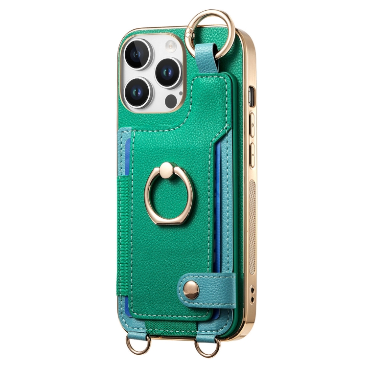 Funda para Teléfono iPhone 16 Pro con Tarjetero Anillo y Presilla para Colgar (Verde)