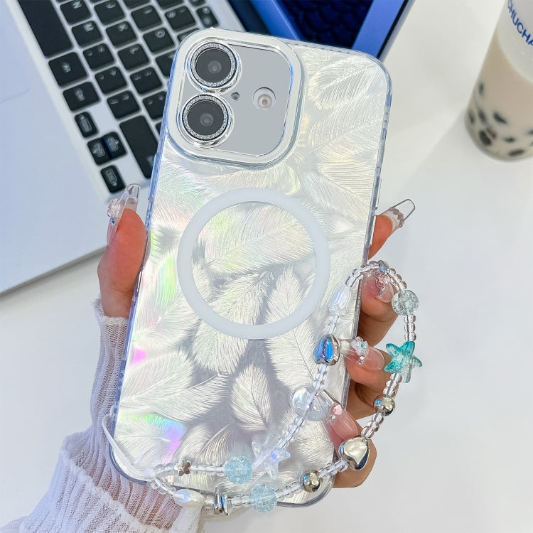 Funda para Teléfono TPU Magsafe iPhone 16 con Película de Lente Brillante (Plumas Blancas)