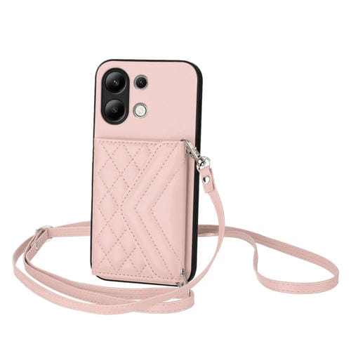 Funda para Teléfono con Textura Rómbica Global con Rfid y Cordón Largo para Redmi Note 13 4G (Oro Rosa)