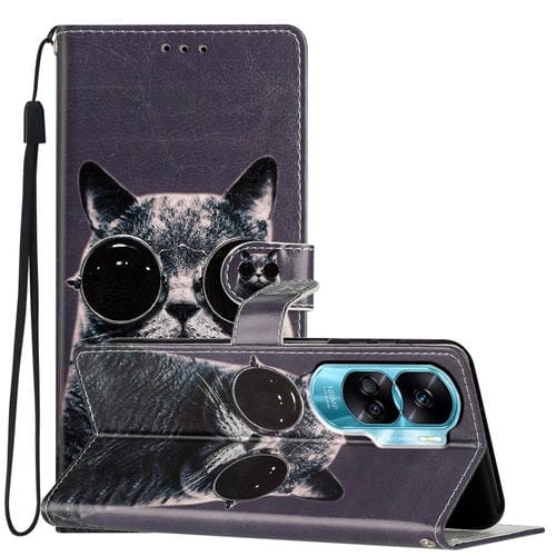 Étui de téléphone en cuir à dessin coloré pour Honor 90 Lite (chat avec lunettes de soleil)