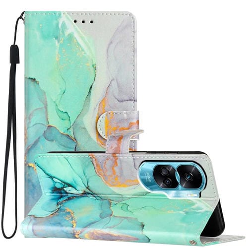 Étui de téléphone en cuir de dessin coloré pour Honor 90 Lite (marbre vert)
