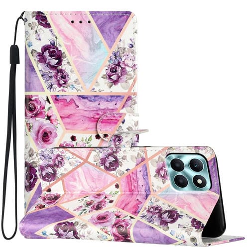 Funda de Cuero con Dibujo Coloreado para Honor X6A (Mármol Morado)