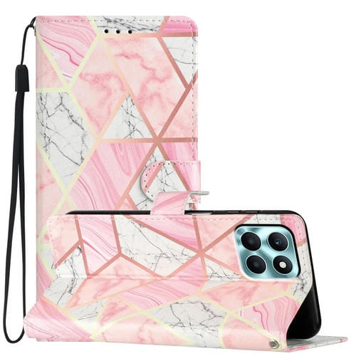 Étui de téléphone en cuir de dessin coloré pour Honor X6A (marbre rose)