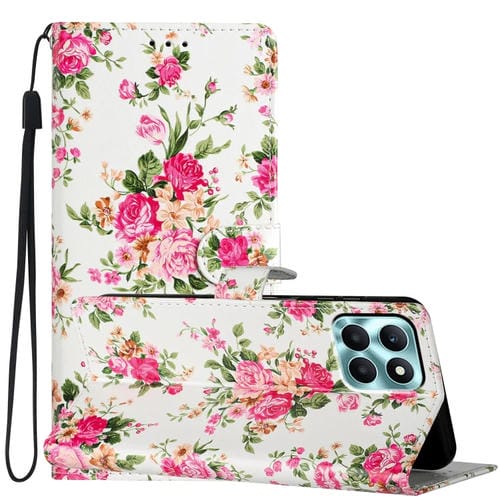 Étui de téléphone en cuir à dessin coloré pour Honor X6A (pivoines)