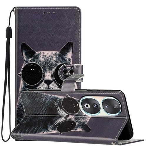 Étui de téléphone en cuir à dessin coloré pour Honor 90 (chat avec lunettes de soleil)