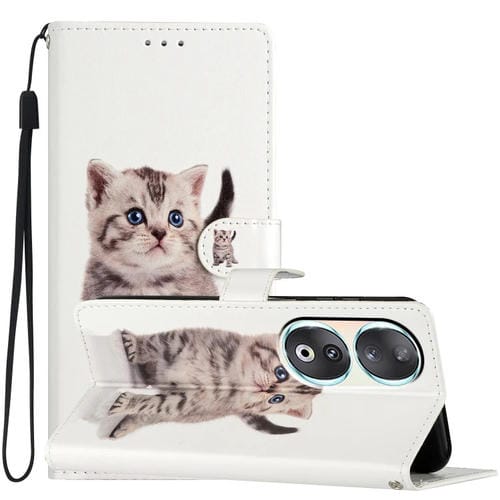 Étui de téléphone en cuir à dessin coloré pour Honor 90 (petit chat tigré)
