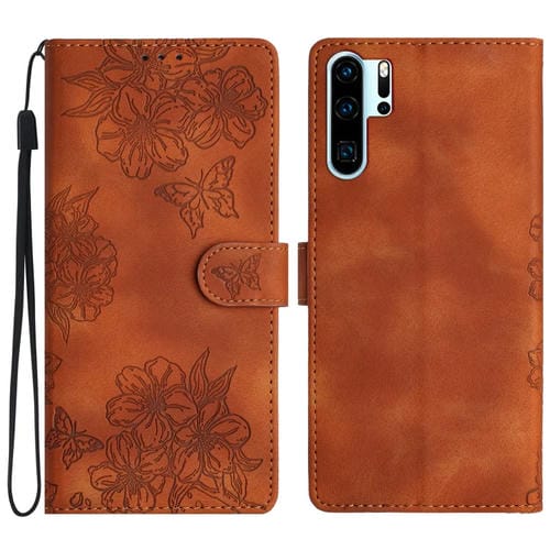- 1x Funda para Teléfono Huawei P30 Pro con Relieve de Piel de Mariposa y Flor de Cerezo (Marrón)