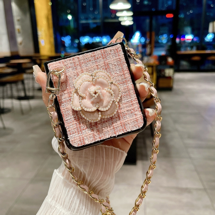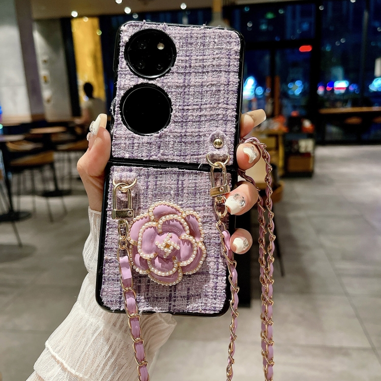 Funda para Teléfono Huawei P50 Pocket Camellia Plaid Fabric PC con Cordón Largo (Morado)