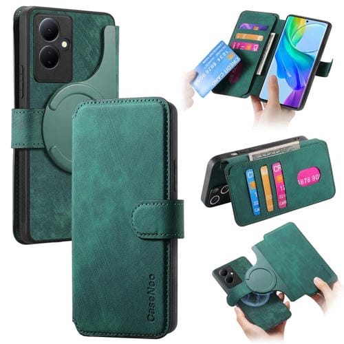 Funda para Vivo V29 Lite Neo Magsafe Rfid Antirrobo de Cuero Retro para Teléfono (Verde)