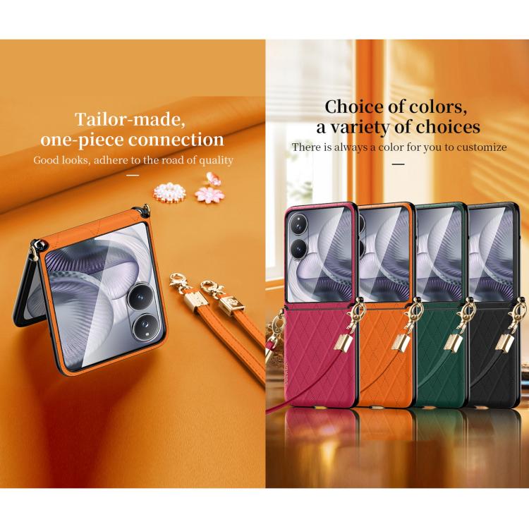 Funda plegable con textura rómbica y cordón para Xiaomi Mix Flip 2 (negro)