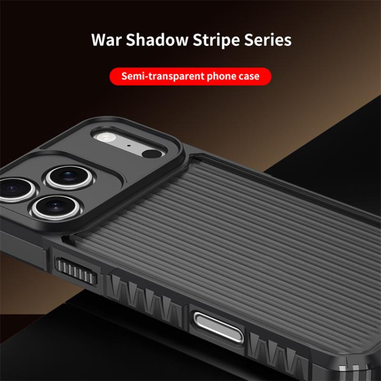 Funda protectora antigolpes War Shadow Stripe Series con airbag y acabado esmerilado para iPhone 17 Pro Max (Azul)