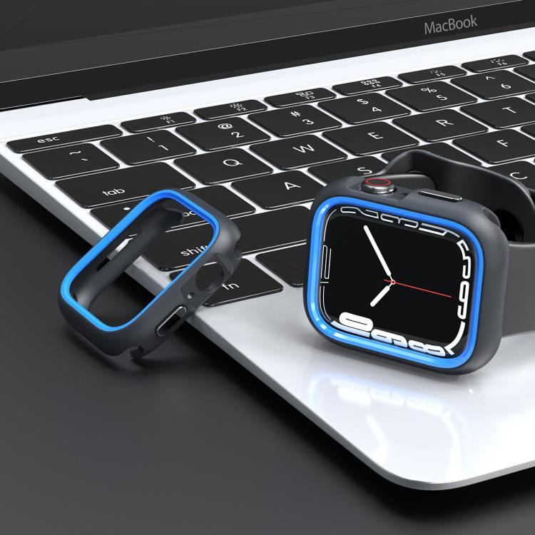 Funda protectora de PC bicolor con media envoltura para Apple Watch de 44 mm y 45 mm (azul)