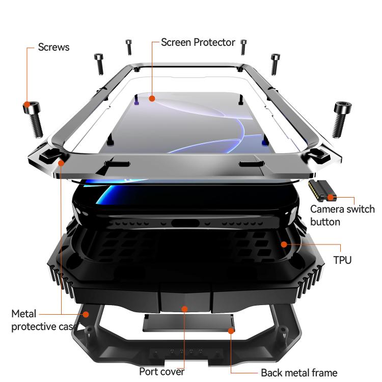 Funda R-JUST de metal, silicona y vidrio templado para iPhone 17 Pro Max, resistente al agua y con soporte (plateada)
