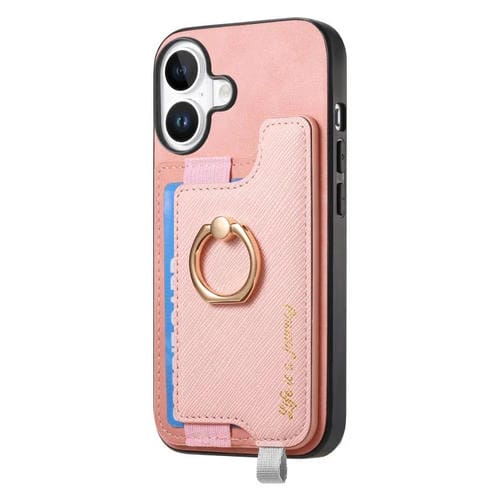 Funda retro Magsafe Cross de cuero con anillo y tarjetero para iPhone 17 (rosa)