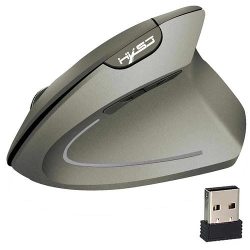 - 1x Ratón Ergonómico Vertical Inalámbrico Hxsj T24 6 Botones 2400 DPI 2.4G con Receptor USB (Gris)