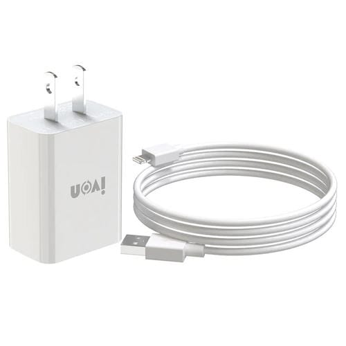 Cargador de viaje Ivon Ad-33 2 en 1 2.1A puerto USB único con cables USB a 8 pin (Blanco)