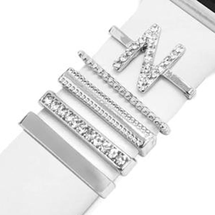 Juego de 5 anillos decorativos de metal con letras para reloj inteligente, estilo N