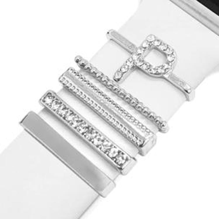 Juego de 5 anillos decorativos de metal con letras para reloj inteligente, estilo P