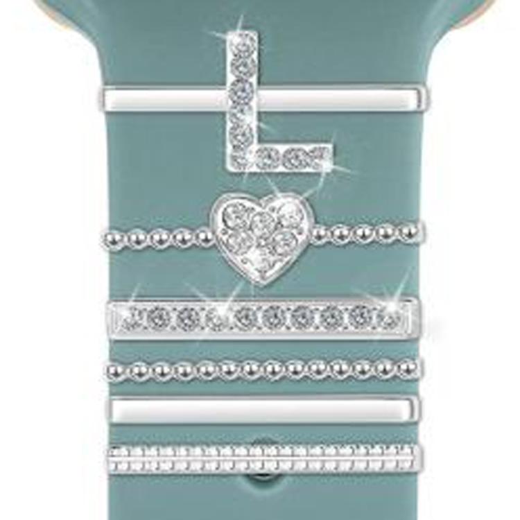Juego de 6 correas de silicona universales para reloj inteligente, accesorios de metal decorativos, talla L (plateadas)