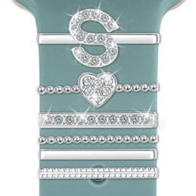 Juego de 6 correas de silicona universales para reloj inteligente, accesorios de metal decorativos, talla S (plateadas)