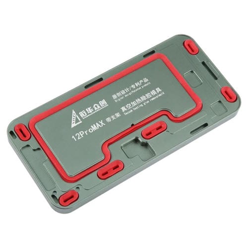El Marco de Pantalla LCD para iPhone 12 Pro Max es una herramienta profesional diseñada para facilitar la eliminación del pegamento OCA mediante un sistema de calentamiento al vacío con Soporte integrado. Compatible exclusivamente con el modelo iPhone 12 Pro Max, este molde permite un desmontaje preciso y seguro de la Pantalla LCD, asegurando la preservación de la presión y evitando daños durante la reparación. Su función principal es suavizar la viscosidad del Adhesivo con calor uniforme, alcanzando hasta 100 grados en aproximadamente un minuto, para facilitar la separación del Cristal líquido sin deformaciones ni desgaste. Fabricado con materiales de alta resistencia, combina aleación de aluminio y silicona para ofrecer durabilidad y eficacia en procesos técnicos de reparación de Pantallas.