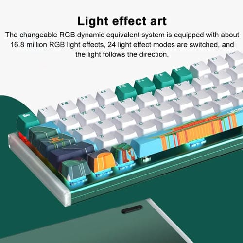 • Conexión de tres modos (Bluetooth 5.1, 2.4G Inalámbrico, Cable Tipo-C), 67 teclas, Batería de litio de 2000 mAh, interruptores mecánicos Cristal de hielo