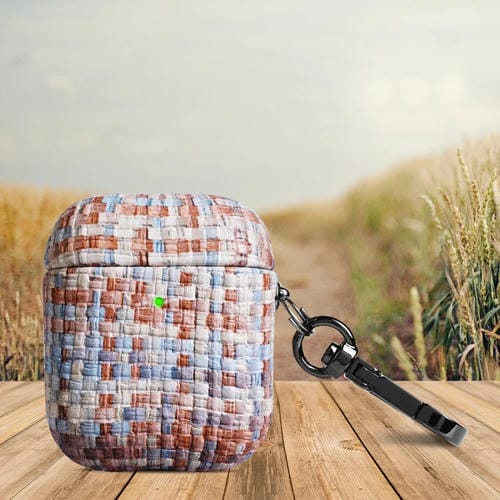 Estuche protector para auriculares AirPods 1/2 Weave Texture PU a prueba de golpes con gancho (Azul)
