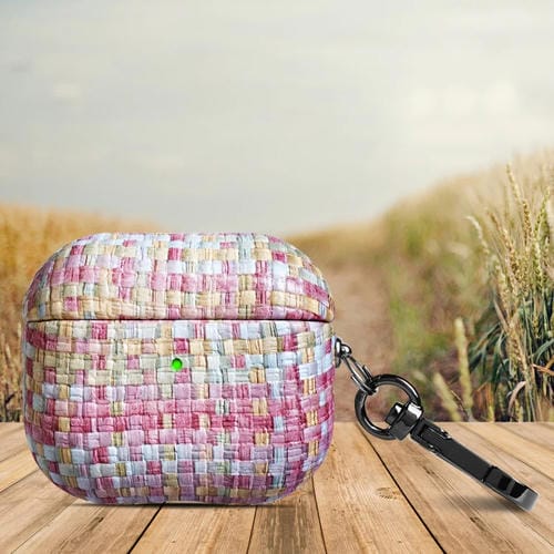 Estuche Protector Para Airpods 3 Weave Texture Pu A Prueba De Golpes Con Gancho (Rosa)