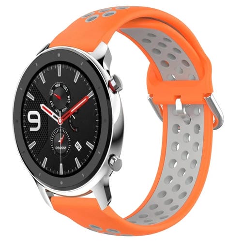 Banda de Reloj de Silicona Deportiva para Amazfit GTR 4 22mm Transpirable Perforada (Naranja + Gris)