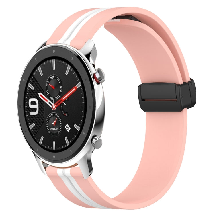 Pour bracelet de montre en silicone Amazfit GTR 4 22 mm avec fermoir magnétique pliant (rose + blanc)