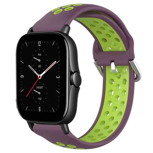 Pour Amazfit GTS 2E 20 mm bracelet de montre en silicone sport respirant perforé (violet + citron vert)
