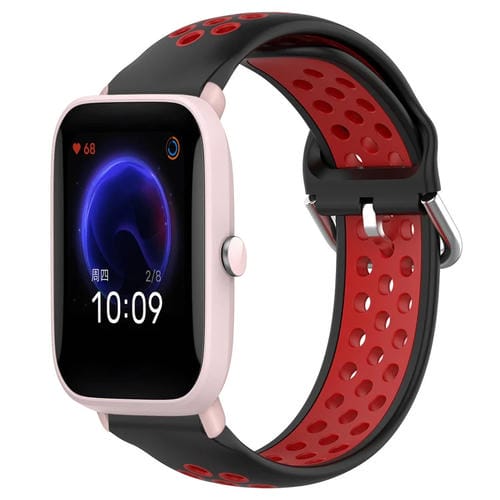 Pour Amazfit Pop Pro 20 mm bracelet de montre en silicone sport respirant perforé (noir + rouge)