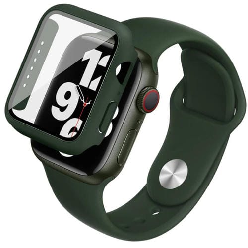 Para Apple Watch SE 1/2/3/Series 4/5/6 40 mm, carcasa y película integradas con correa de silicona (verde oscuro)