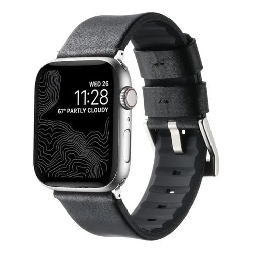 Correa para Apple Watch Ultra 49mm Silicona Híbrida de Cuero Genuino (Negro) con Hebilla Plateada