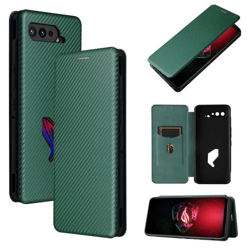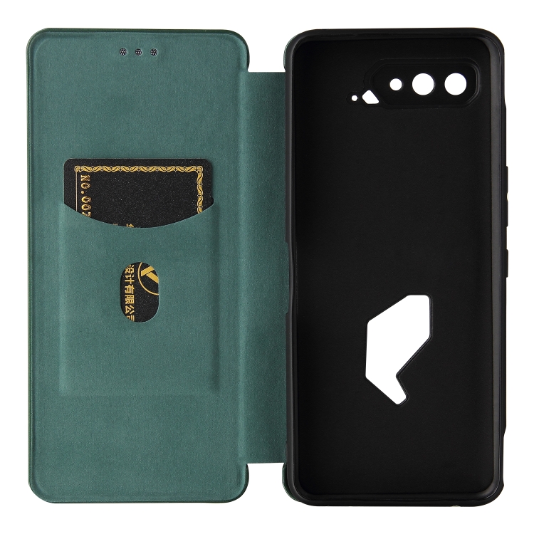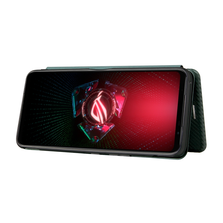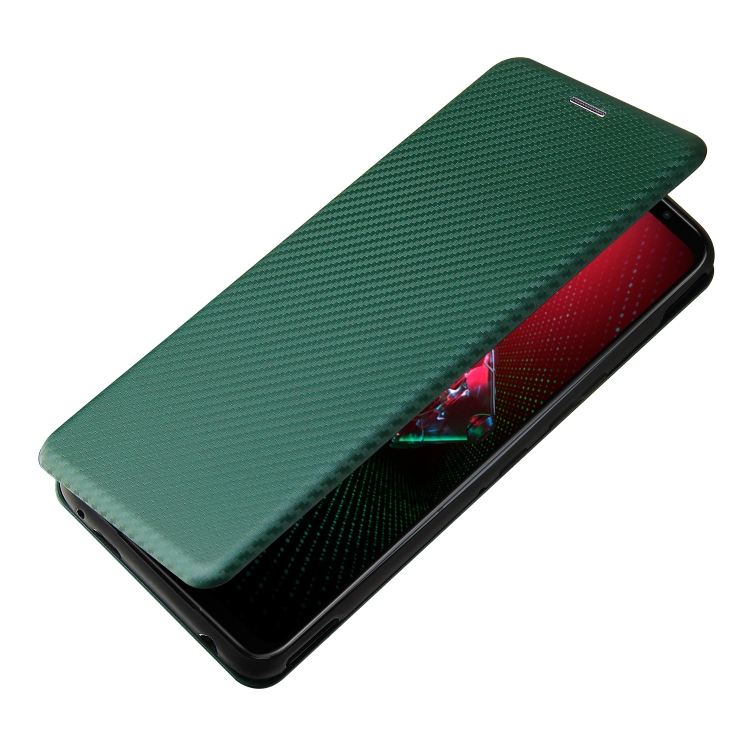 Funda para Asus Rog Teléfono 5 Fibra de Carbono Magnético Flip TPU + PC Cuero PU con Ranura (Verde)