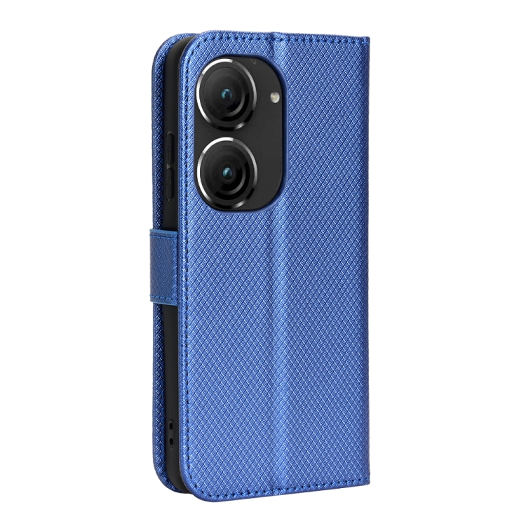 Caja de Teléfono de Cuero para Asus Zenfone 10 y 9 con Textura de Diamante (Azul)
