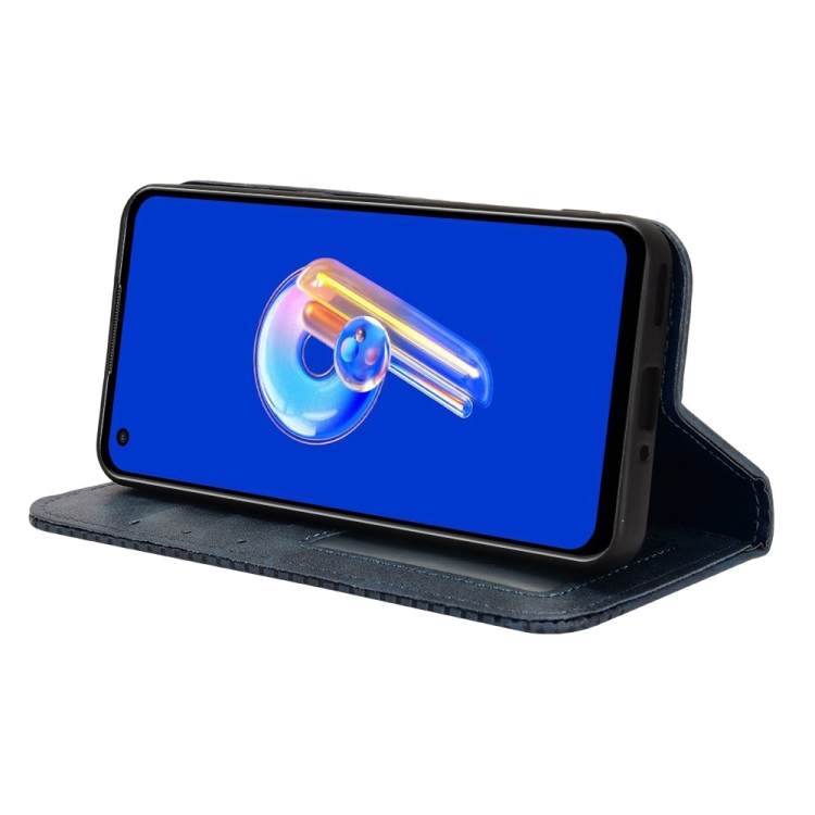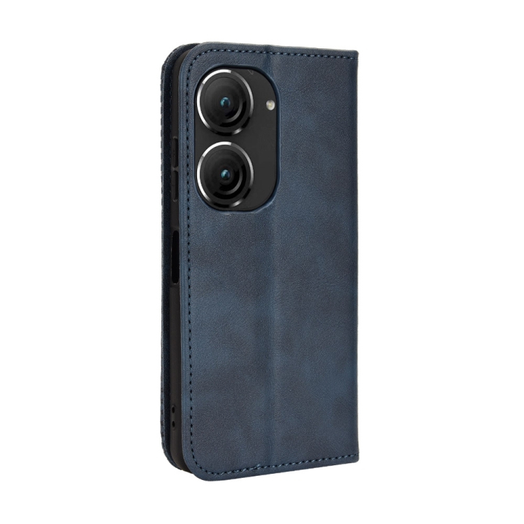 Funda de Cuero para Asus Zenfone 10 / 9 con Hebilla Magnética y Textura Retro (Azul)