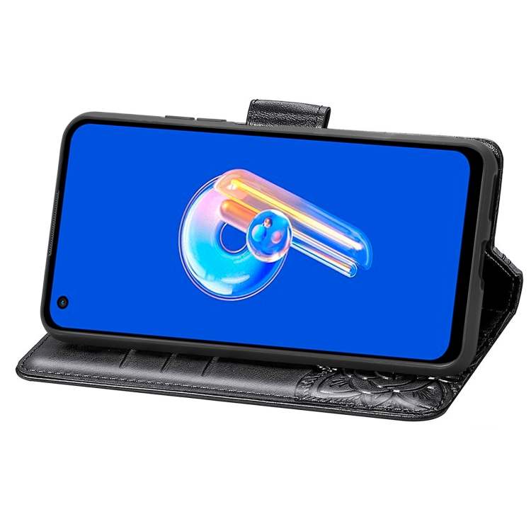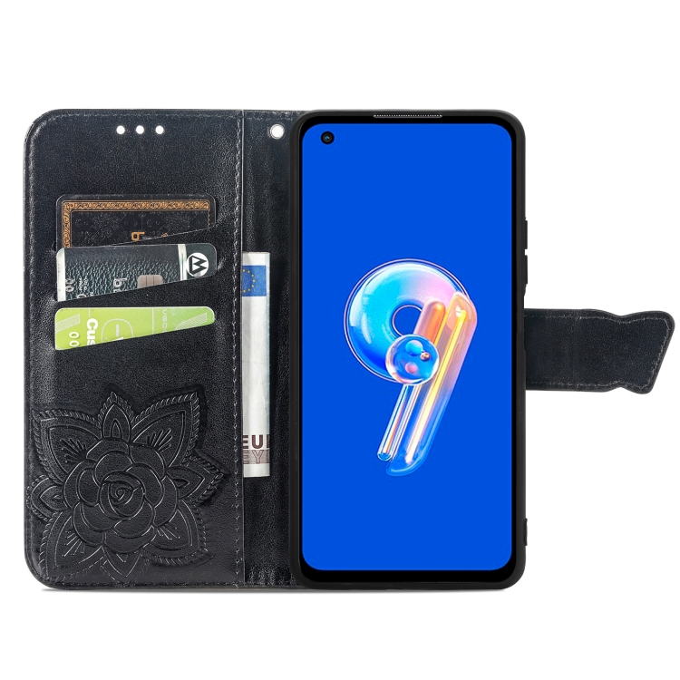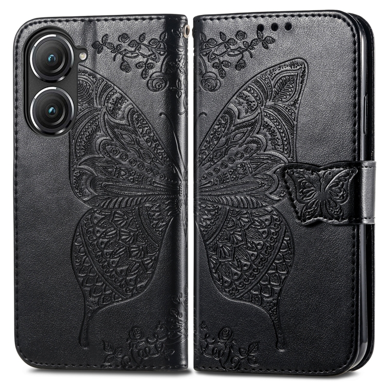 Estuche para Asus Zenfone 9 Butterfly Love Flower en Cuero en Relieve (Negro)