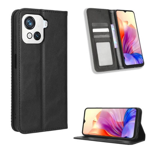 Funda de Cuero con Hebilla Magnética para BlackView Oscal C80 Textura Retro (Negro)