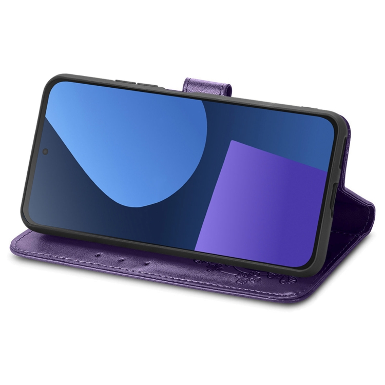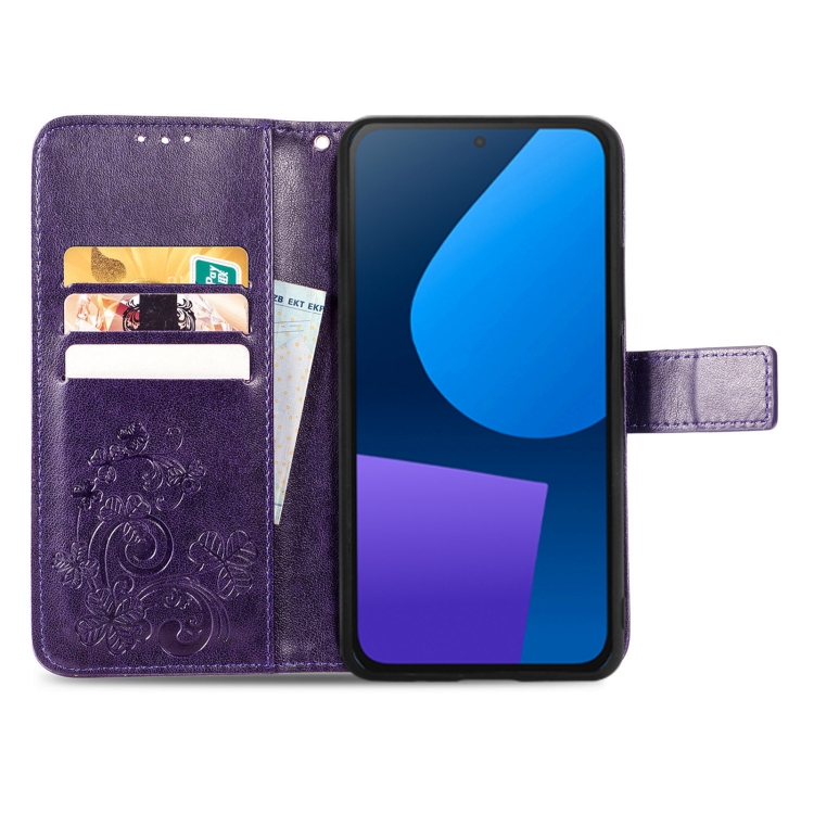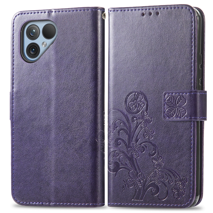 Funda de Cuero para Fairphone 5 con Cierre de Cuatro Hojas (Púrpura)