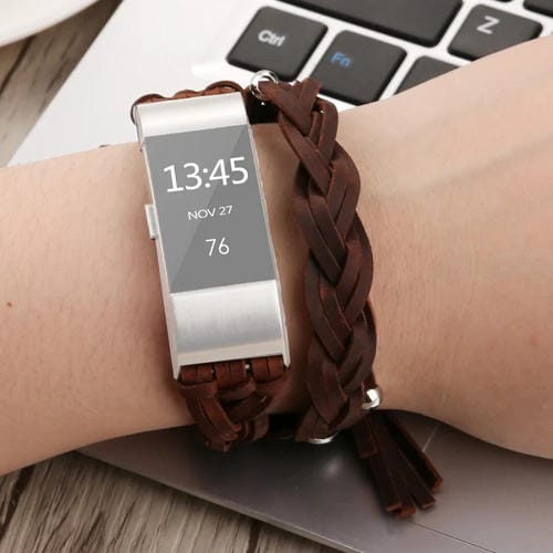 Correa de cuero trenzado para Fitbit Charge 2 (Marrón)